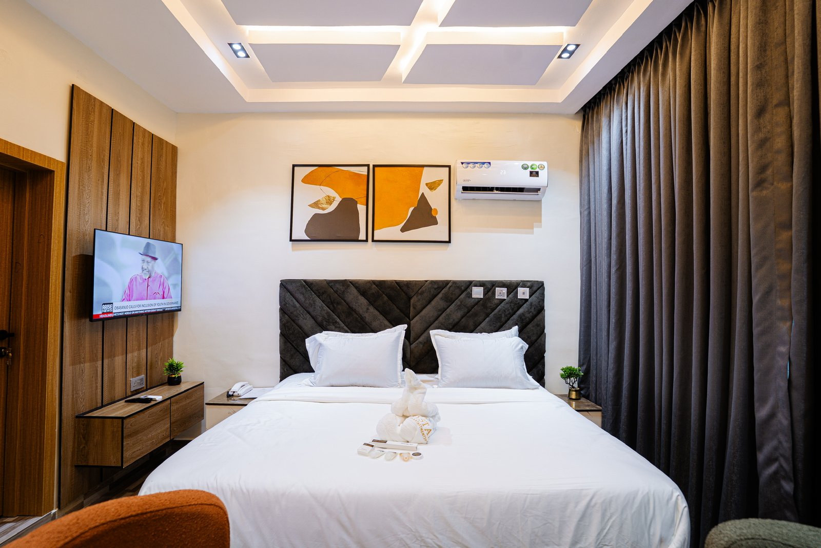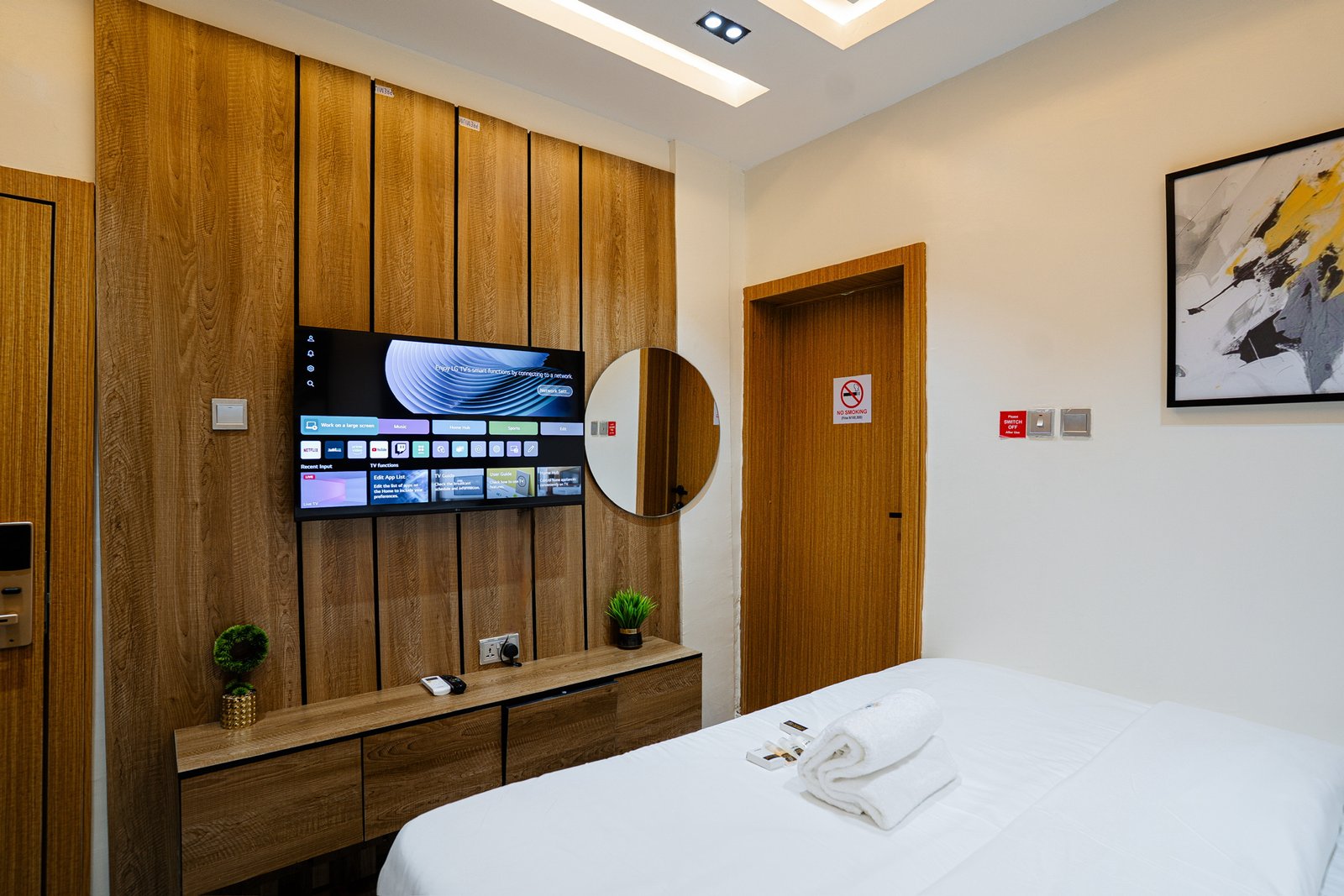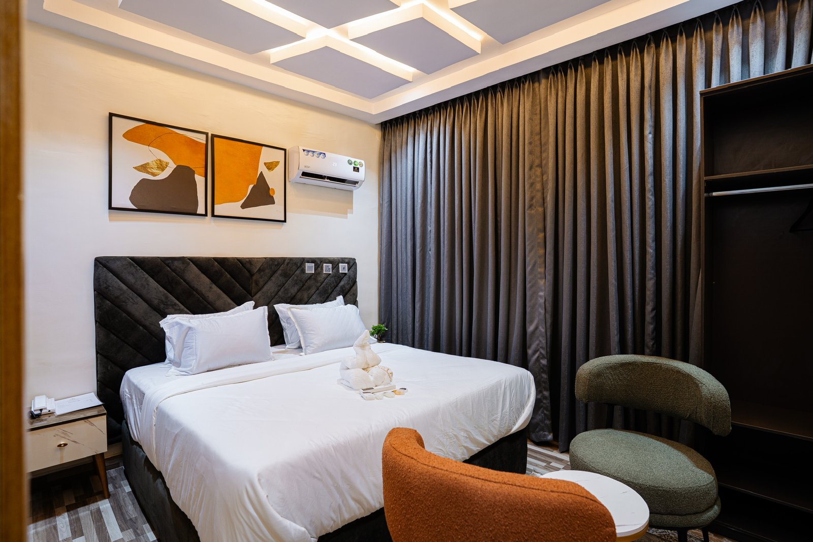 Step into understated elegance in the Amber Room — a space where simplicity meets comfort. With a 6×6 bed, Smart TV, free WiFi, 24/7 AC, a mini sitting area, and a water heater, every element is tailored to ensure a peaceful stay. Ideal for guests seeking intimacy and calm, the Amber Room embodies warmth, relaxation, and effortless style