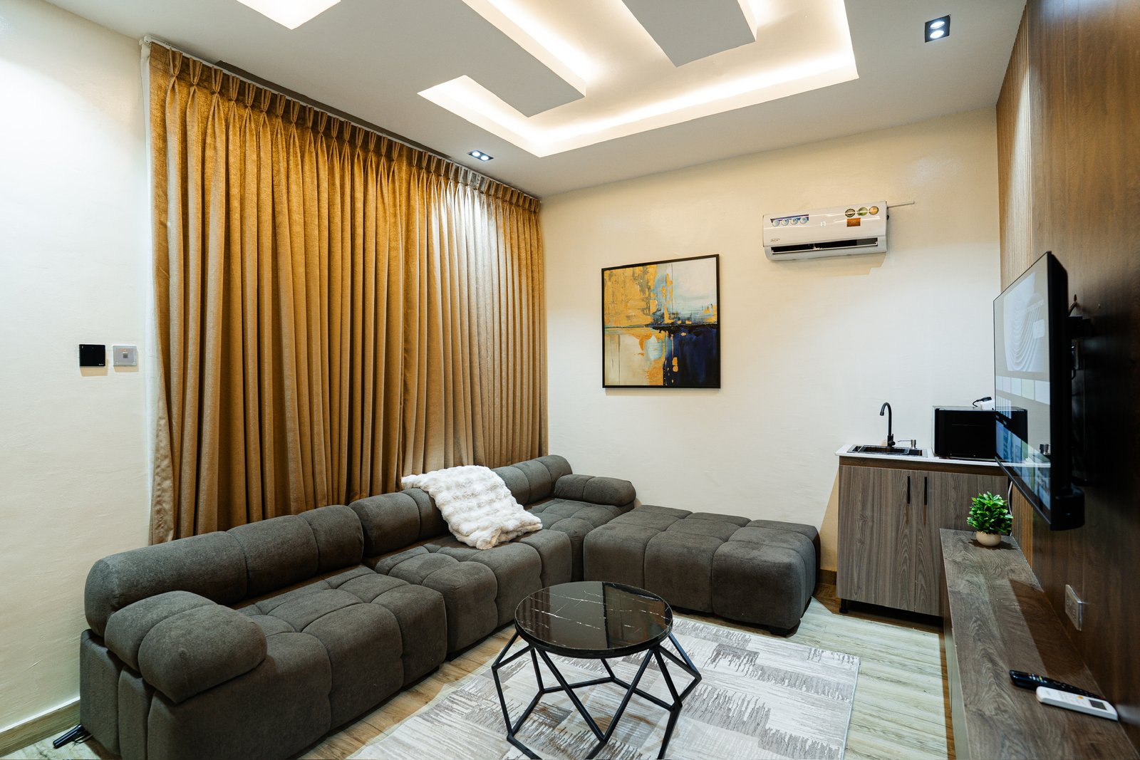 Indulge in the pinnacle of comfort and elegance in the Crystal Suites. Thoughtfully designed for guests who value space and sophistication, this suite features a stylish sitting room, a serene bedroom with a 7×7 king-size bed, and a private balcony perfect for unwinding. The mini kitchen and dining area provide the convenience of home, complemented by two Smart TVs, free WiFi, air conditioning, and a water heater. Every detail of the Crystal Suites embodies refined living — a true blend of luxury, comfort, and class.