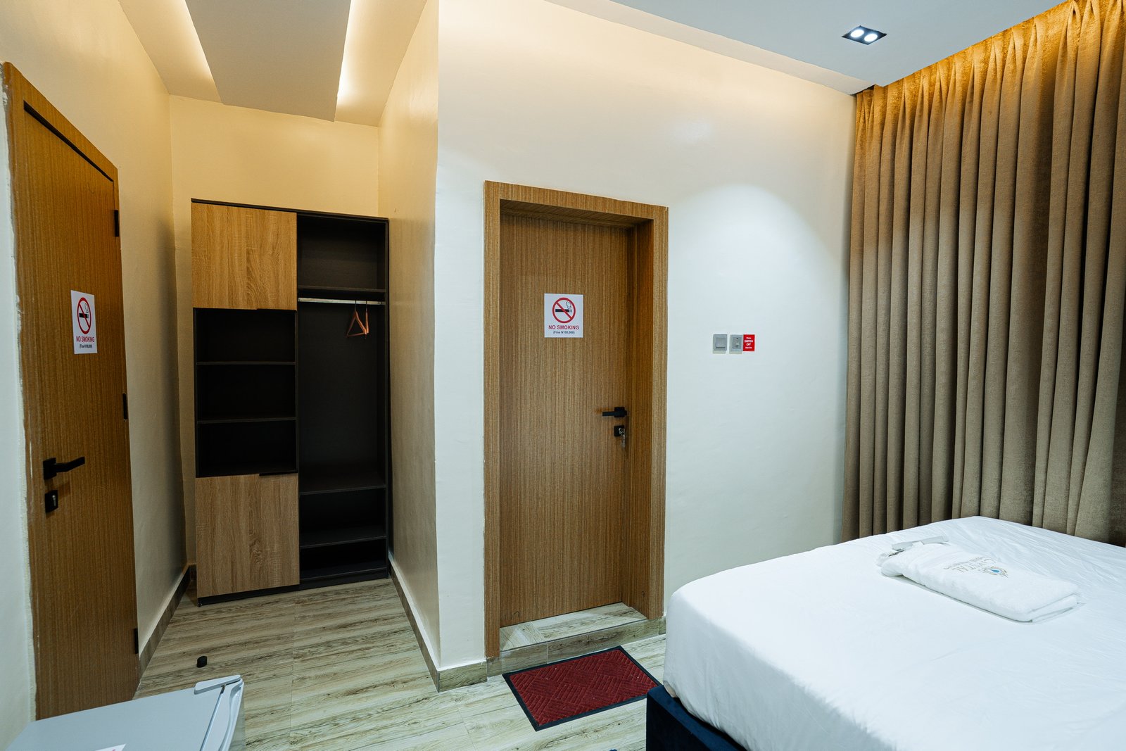 - Smoking inside the rooms is prohibited. A fine of ₦100,000 applies for any violation.