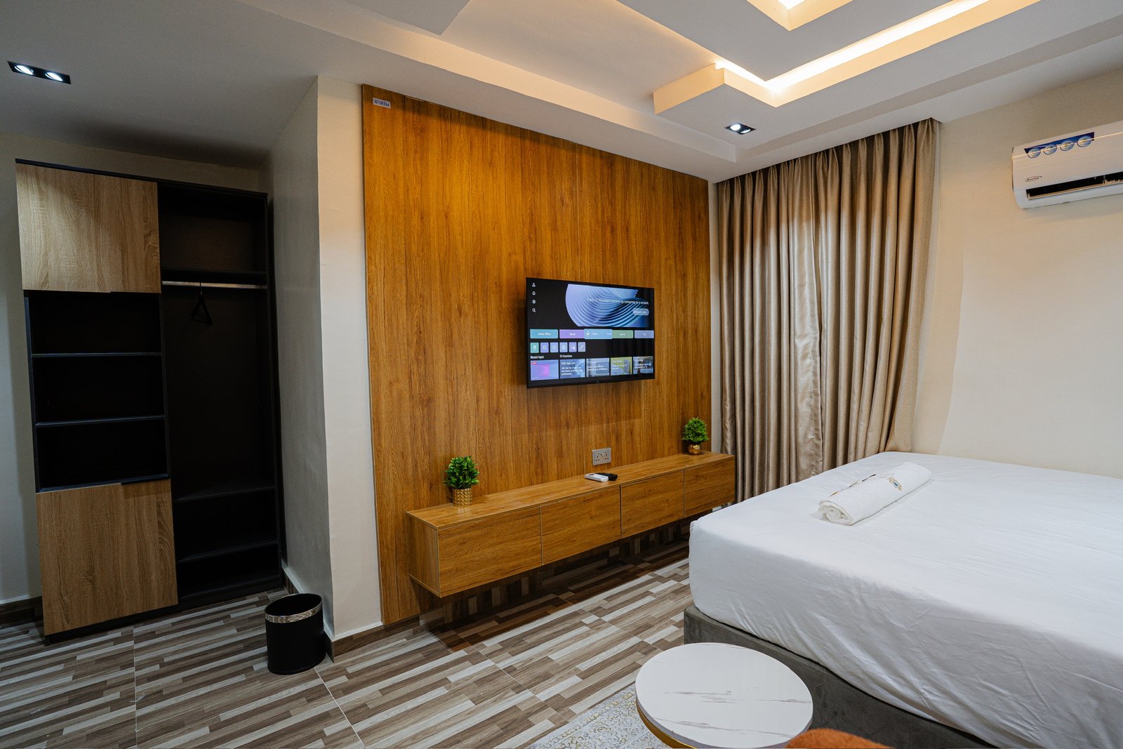 Discover cozy sophistication in the Emerald Room, a warm and inviting space that captures the essence of comfort. Featuring a 7×7 king-size bed, a mini sitting area, Smart TV, free WiFi, 24/7 AC, and a water heater, this room offers a harmonious blend of elegance and ease. Designed for guests who appreciate serenity and modern simplicity, the Emerald Room promises a restful and memorable stay.