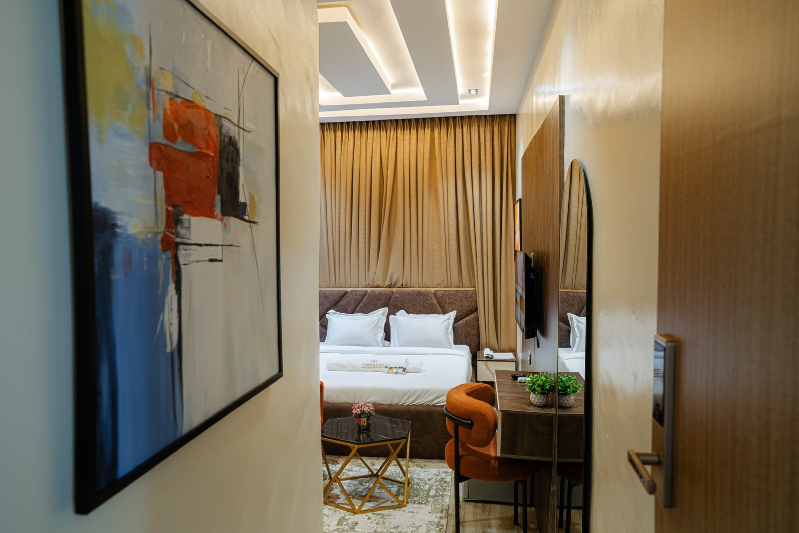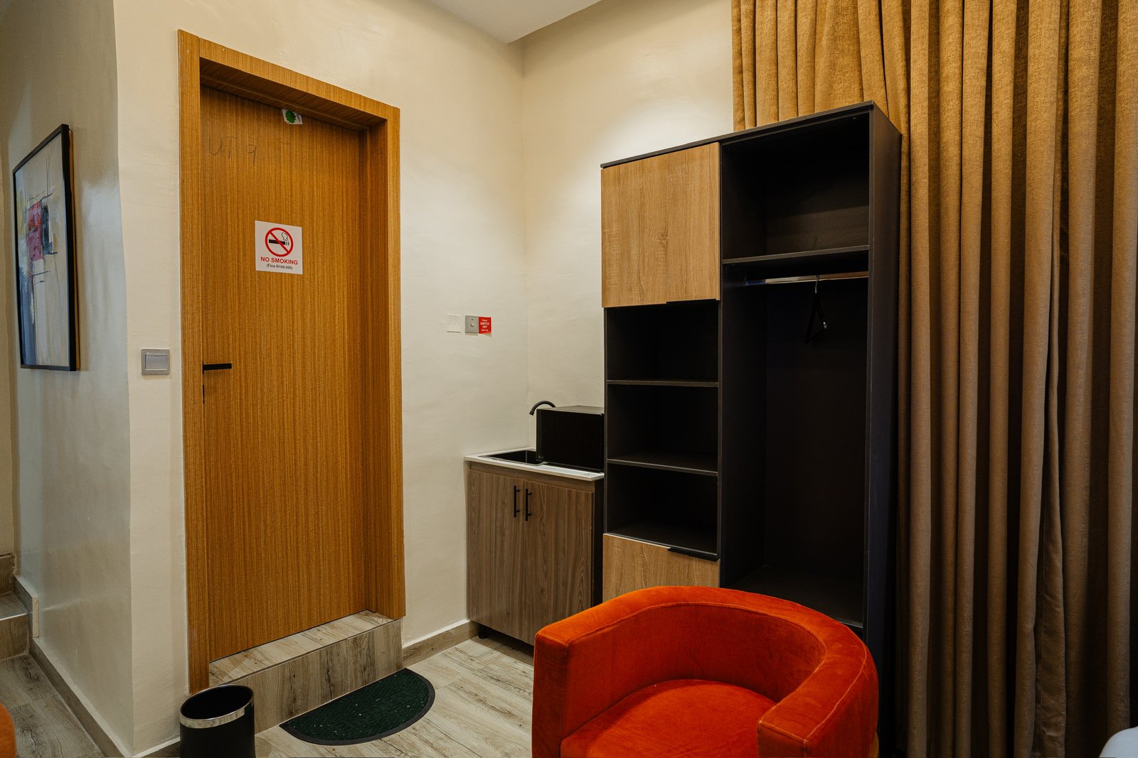Embrace the charm of contemporary elegance in Radiant Height. This spacious room is crafted to offer a bright and airy retreat, enhanced by a high roof and excellent ventilation. Equipped with a mini kitchenette, a supreme fine bed, Smart TV, free WiFi, 24/7 AC, and a water heater, it perfectly balances functionality with style. Whether for business or leisure, Radiant Height invites you to experience relaxation in its purest form — where comfort meets sophistication.